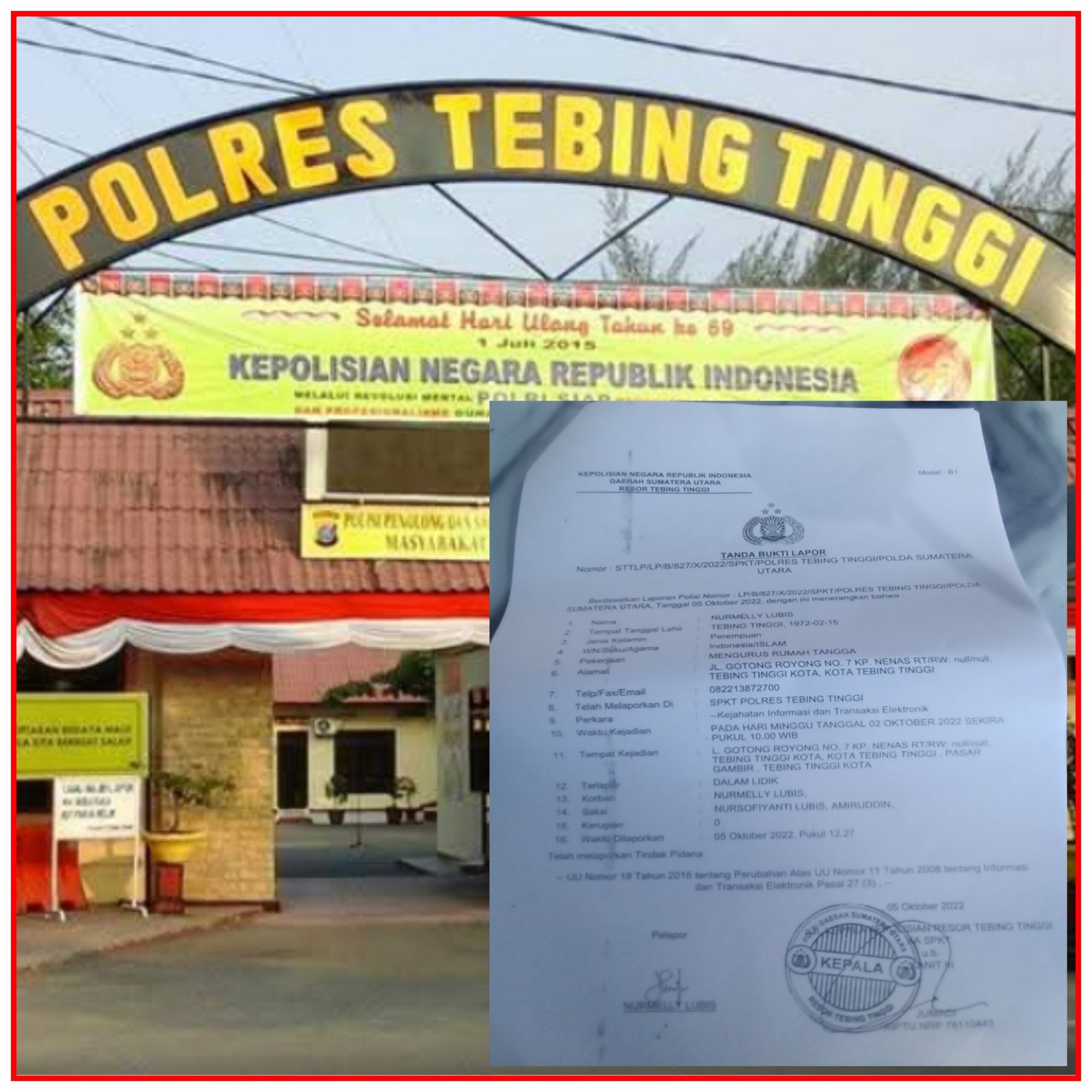 TEBING TINGGI | SUMATERA UTARA | Redaksibintang.id – Seorang perempuan yang berinisial N juga mantan ibu bhayangkari membuat Pengaduan ke SPKT Polres Tebing Tinggi tentang dugaan Tindak pidana Undang Undang Nomor 19 Tahun 2016, Perubahan atas Undang Undang nomor 11 Tahun 2008 tentang Informasi dan Transaksi elektronik Pasal 27 (3), sesuai dengan Laporan Polisi Nomor : 4/B/827/X/2022/ SPKT/POLRES TEBING TINGGI/POLDA SUMATERA UTARA, tanggal 05 Oktober 2022, Jum’at (10/4/2026).