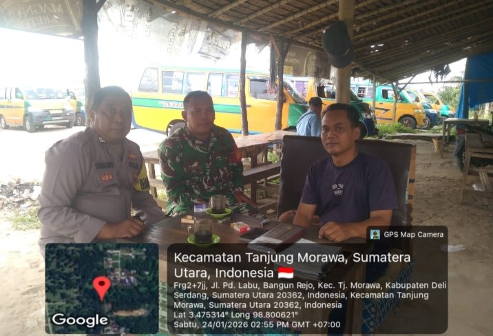 TANJUNG MORAWA | DELI SERDANG | Redaksibintang.id – Dalam rangka menjaga Keamanan dan Ketertiban Masyarakat (Kamtibmas) agar tetap kondusif Bhabinkamtibmas Polsek Tanjung Morawa Aiptu Sugiono bersama Babinsa Koramil 0201-16/ Tanjung Morawa, Sertu Ervan Sayputra memberikan himbauan Kamtibmas kepada seluruh Supir angkutan umum PT. Nitra P 26, Sabtu (24/01/2026).
