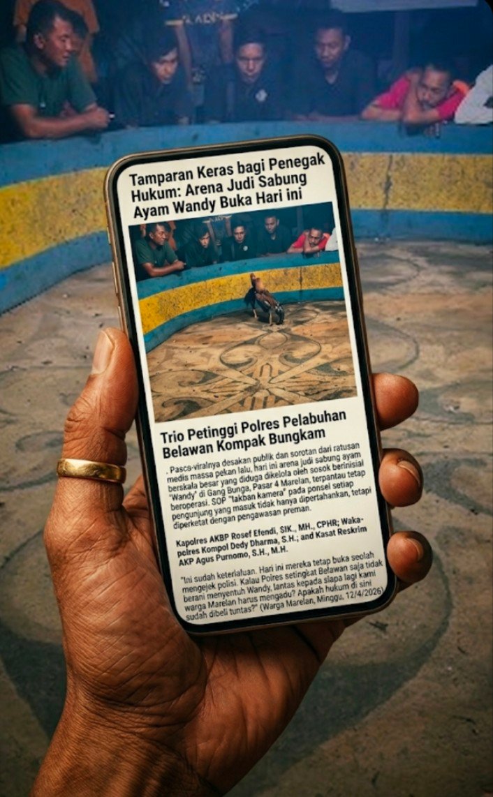 MEDAN | Redaksibintang.id – Tantangan terbuka dan keresahan warga nyatanya belum cukup untuk meruntuhkan tembok impunitas yang melindungi mafia perjudian di wilayah hukum Polres Pelabuhan Belawan. Pasca-viralnya desakan publik dan sorotan dari ratusan media massa pekan lalu, hari ini arena judi sabung ayam berskala besar yang diduga dikelola oleh sosok berinisial ‘Wandy’ di Gang Bunga, Pasar 4 Marelan, terpantau tetap beroperasi dengan leluasa.